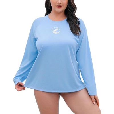 Women Plus Size Rash Guard Light Weight Long Sleeve Swim Shirt Quick Dry UPF50 Swimsuit Top