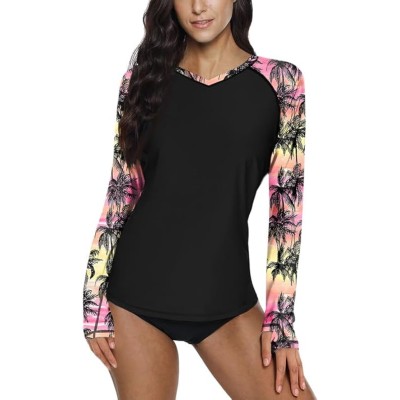 Rash Guard for Women UV Protection Swim Shirts Long Sleeve Quick Dry Water Tops Swimsuit with Thumb Hole