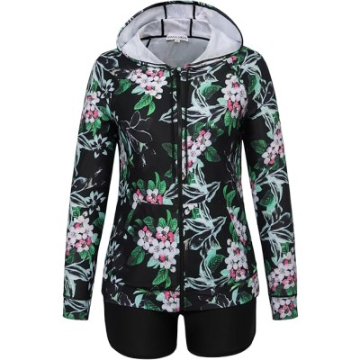 Women's Plus Size 3 Piece Rash Guard Long Sleeve Boyshort Swimsuits Zipper UPF 50+ Hooded Bathing Suit